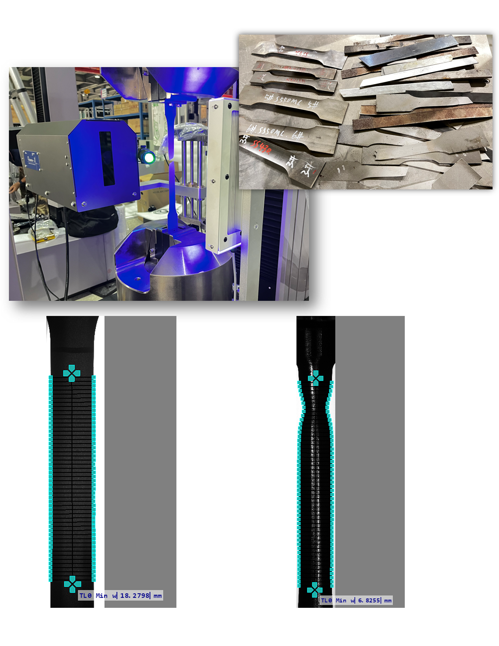 2)哑铃薄板试样:测量轴向应变和横向应变,比如泊松比、N值、R值。